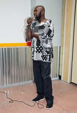 Head Coach of the St. Vincent Grammar School Rawlston Morgan addresses reception at Calabash Restaurant and Lounge in Philadelphia in April 2025.Photo by Nelson A. King